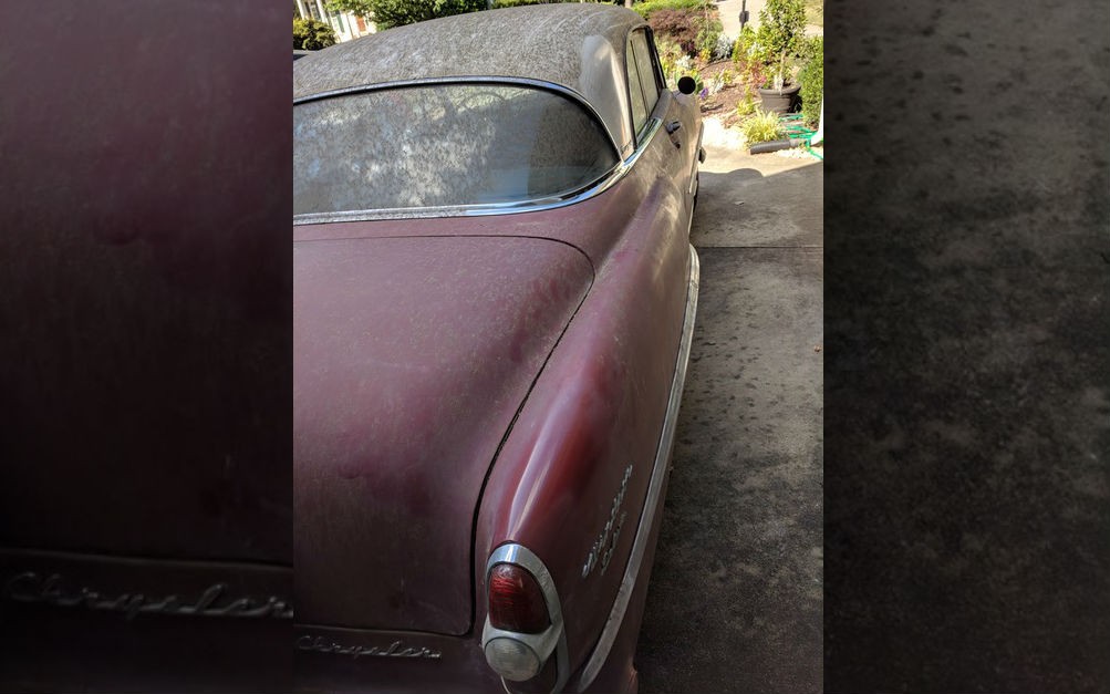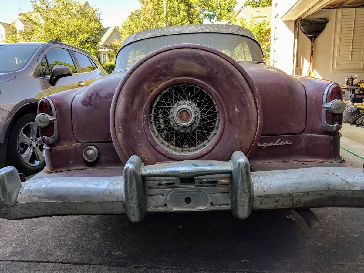 From what little you can see of the car it looks like a worth while project. These pre Exner cars are some of my favorite Mopars, if the circumstances were better for me this is the kind of project I’d be looking for. As for the continental package on the back I think I would customize it to follow the body contours of the car, just to clean up its appearance and to make it less bulky. Nice find!