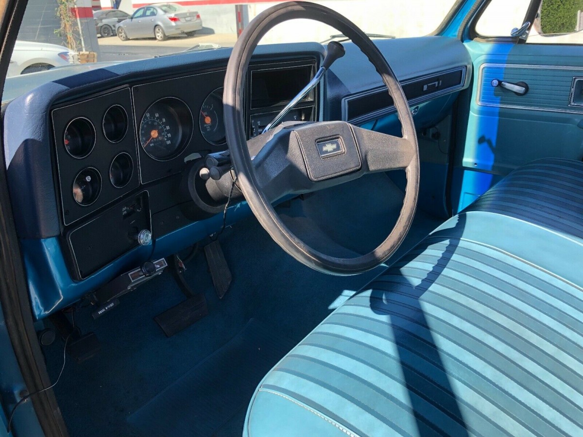 And truthfully, there may be more of these running around than we think, but the fact that the stickers on the edge of the bed can easily be coated over when a respray is commissioned makes it impossible to tell. The Big 10 did get a few nice hardware upgrades, including 3/4 ton rear springs, five lug axle, two-piece driveshaft, bigger rear brake drums and shoes, heavy-duty front brakes, dual-diaphragm booster, and a few other hardware improvements. But really, the Big 10 is all about the lack of cats and minimal additional emissions equipment, and you have to be a C10 fanatic to likely appreciate these hidden improvements. The seller’s truck looks mint inside, with a nicely preserved bench, door panels, and instrument binnacle. I thought the Bonanza option would get you fake wood trim, but I could have that confused with another options package.