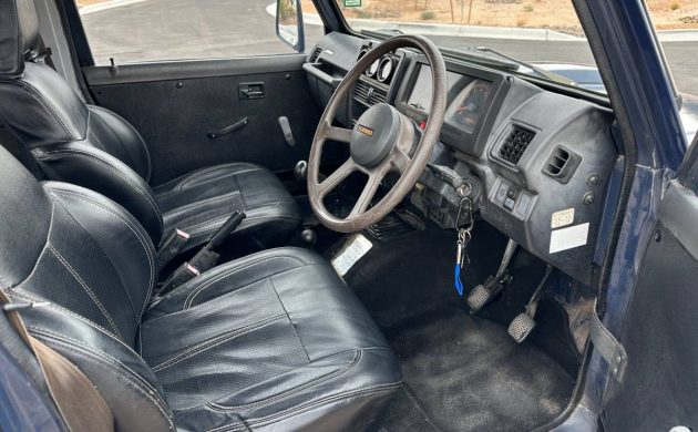 Nothing says “’80s economy vehicle” like a one-piece molded plastic steering wheel. I’ve considered the Jimny for a RV-towed vehicle or “toad,” something I don’t need and never have. Still, my brain is always making lists of things I may never buy, just in case. Is there a cure for this behavior? That dashboard seems to have taken a beating in the sun, but check out those leather seats!
