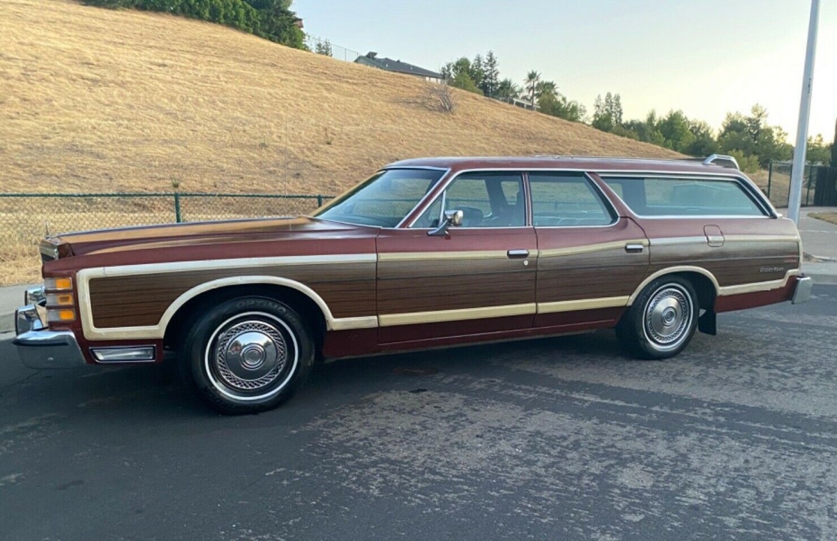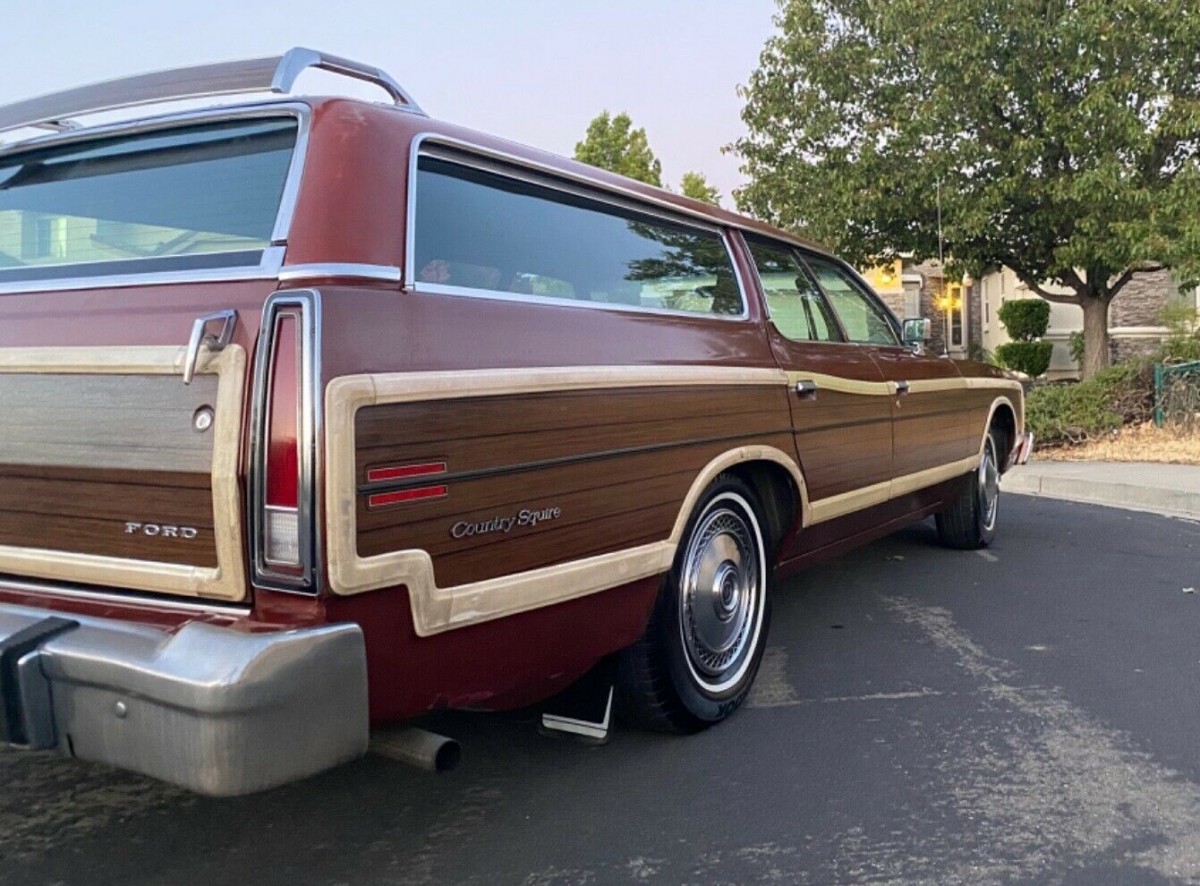 I saw a 77-79 Ford Ranchero Squire for sale last year that looked like this. It had a similar color and all the wood grain except this one had a white vinyl top and a 351 engine.