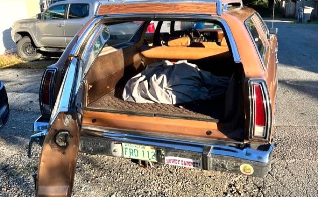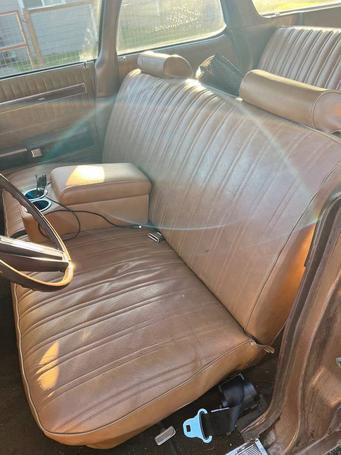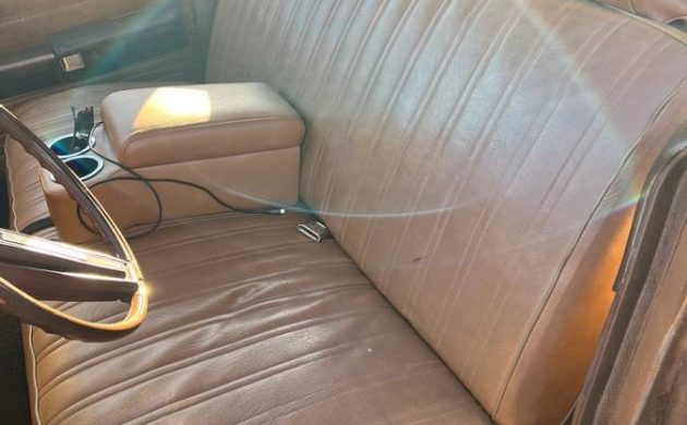 We assume the seller is the second owner and he/she is hesitant to let it go as they’ve made quite a few trouble-free trips together. We’re not sure about the body and paint as one rear quarter has been partially resprayed (accident or rust?). Also, the listing says the color is green, yet we see a lot of gold everywhere. The wagon is well-equipped, including a 400 cubic inch V8 and non-working factory air conditioning.
