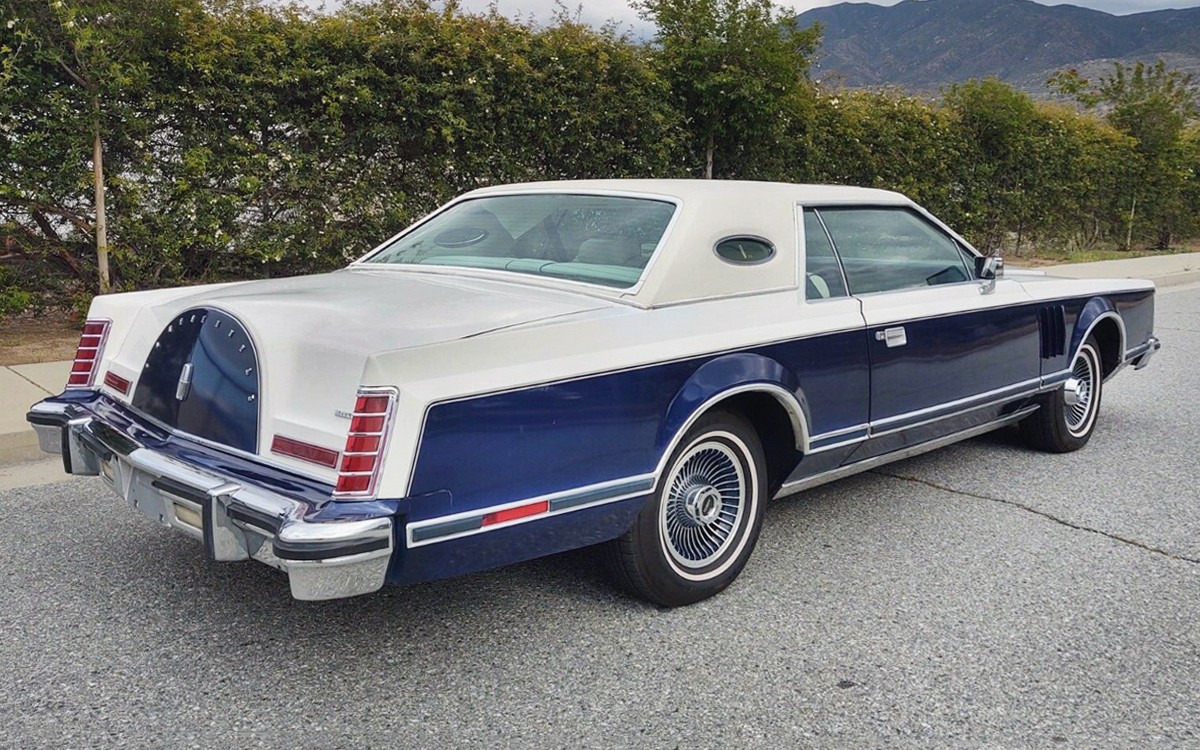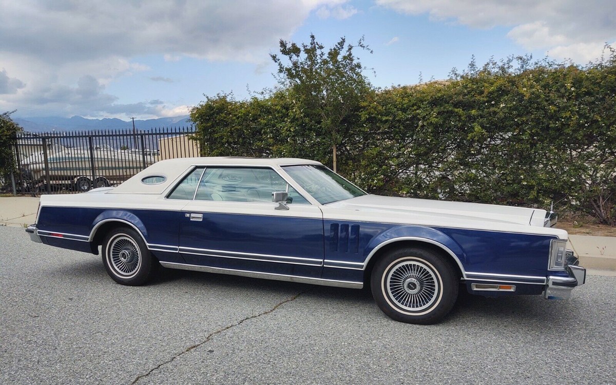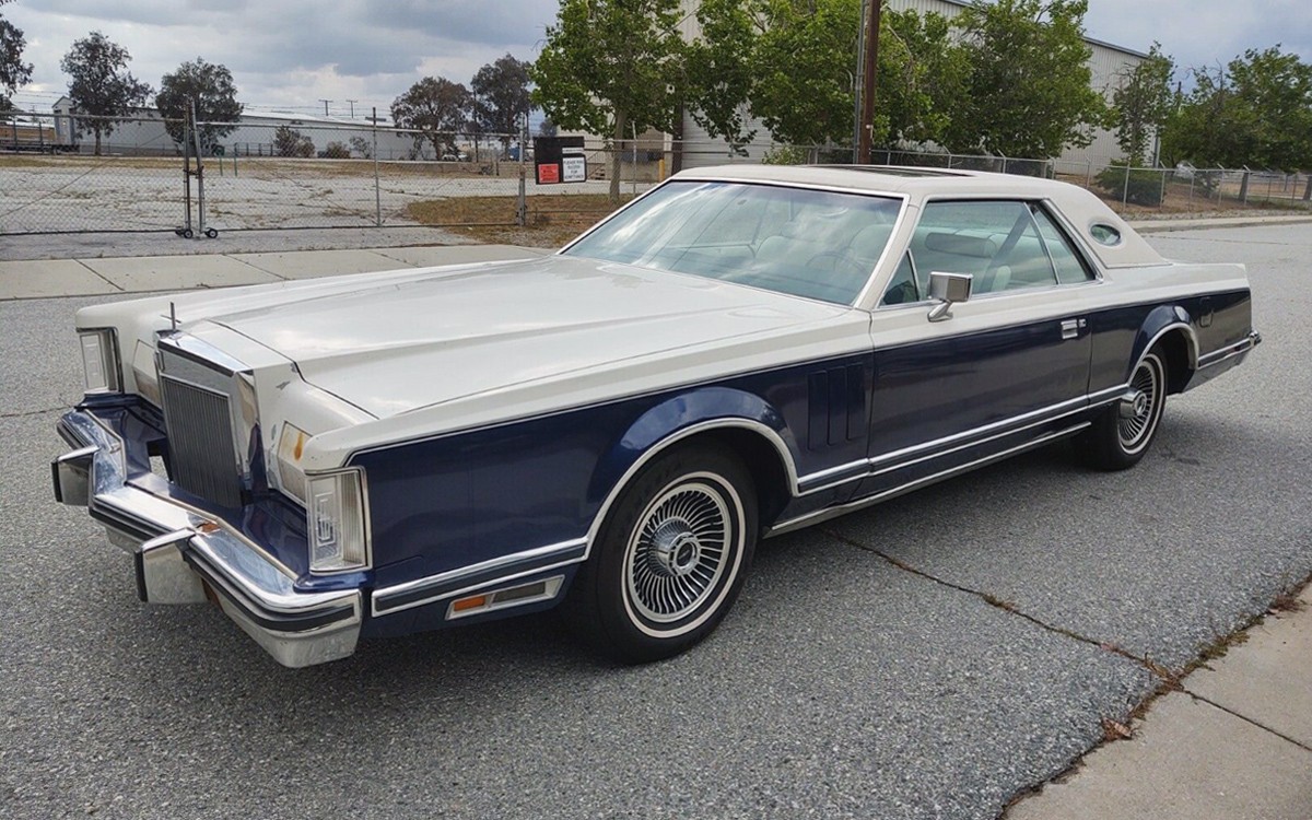 There were several Designer edition Lincoln Mark Vs made from 1977 to 1979 including Pucci, Givenchy, Cartier, and Bill Blass as seen here. This car appears to have the optional full vinyl roof rather than the half-vinyl carriage roof. The 1979 Bill Blass editions all came in this color combination with white over midnight blue and a padded vinyl top, either half-top or full top. This car would sure stand out today among the 90% of silver, white, or black SUVs on the roads.