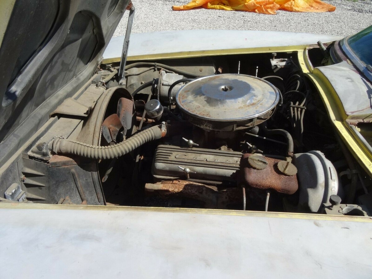 Under the hood, the engine looks dusty but original for the most part. Clean it up, throw away the T-handle valve cover bolts, add some ignition shielding, and this one is ready for the show. The seller believes it to be a 327 cubic inch engine with 350 horsepower. The evidence cited is the position of the redline on the tach. Corvette’s 327/350 combo had hydraulic lifters and a lower redline than the solid lifter 327/365 engine. As for the engine itself, the seller poured Marvel Mystery oil into the cylinders, let it soak for a while, and hit the starter. The engine rotated, but it did not crank. There is a lot of fuel system work ahead of the next owner before that happens. Oh, and there is a problem with the driver’s side rear wheel doesn’t roll. It may be a stuck brake or a burned out bearing. The seller is unsure and likely not in the mood to check.