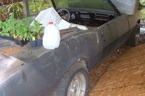 It’s hard to get many details about this particular Pontiac from the (very small) pictures. You can see the block of what looks to be a 350 cu in (5.7 L) V8 – but please let us know if you can identify the engine more accurately. You also get a driver’s seat, an empty milk gallon, a battered rag top box, and a rusted gas tank. What more incentive do you need to get rid of that backyard rotting backhoe and trade it for a rotting Firebird?