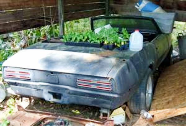 Maybe those aren’t veggie plants on the trunk. It’s a business opportunity.