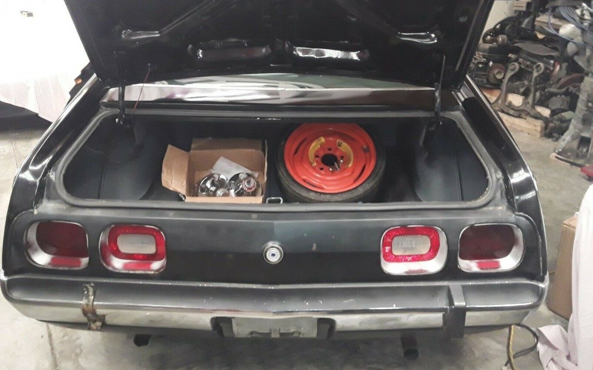 Go large or go home, right? Well this AMX has gone large with its 255 net HP, 401 CI V8 engine and accompanying composite, cowl induction hood. I got sideways when reviewing a ’74 AMX a few months back thinking that it too had this special hood but a BF contributor advised that ’73 was the end of the line for this performance enhancement. The seller claims that this AMX, “starts and runs”, not exactly a ringing endorsement but further inquiry may help to spell out how well this AMX actually starts and runs. Gear changing is courtesy of a three-speed automatic transmission and fortunately, this noir special has A/C. The seller includes that he has replaced the fuel tank/lines and rebuilt the carburetor.