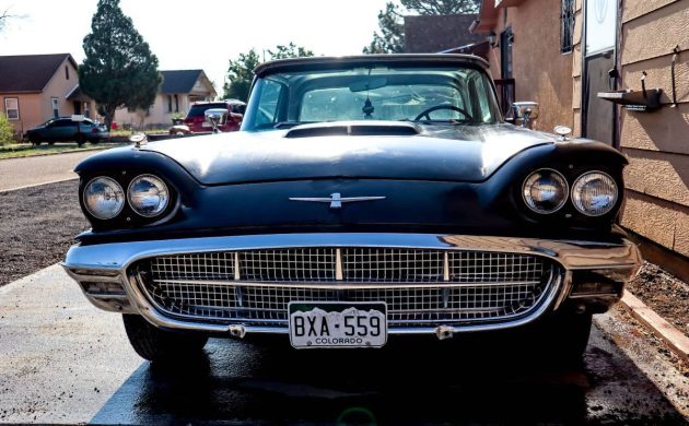 The seller doesn’t say which of the two Thunderbird Special V8 engines are under the hood. The standard engine for 1960 was the 352-cubic-inch V8 that generated 300 horsepower and an optional 430-cubic-inch V8 that offered 350 horsepower was available for $177.00. There’s a listed 75,000 miles on the odometer. Since 98% of 1060 Thunderbirds were ordered with the optional Cruise-O-Matic automatic transmission, this one has it too. The seller says it has been rebuilt and needs to be installed. On the surface, this looks like a decent driver-quality Thunderbird that’s been around 65 years and hopefully will be around for a lot more. It’s currently residing in Pueblo, Colorado and is for sale here on craigslist for $8,500. What do you think about this Tuxedo Thunderbird?