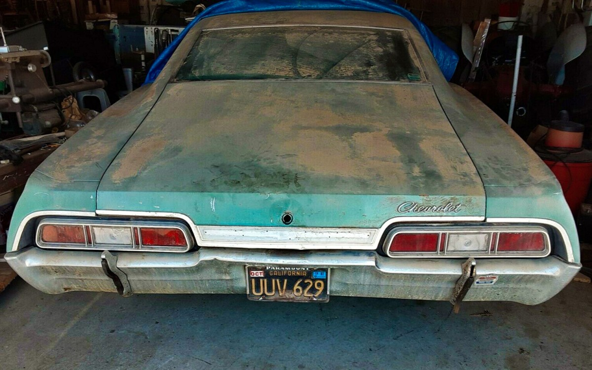 This was the best selling car of 1967 – 1968. Turquoise/aqua was also a very common color on cars during this time period. It is a very attractive body style. No wonder they sold so any of them! It must have been great when it was new. Unfortunately since it’s not running, there are too many unknowns. My offer would be quite a bit below $6000. Others are bidding it up above that, so others obviously don’t feel that way. Getting a car running after sitting for 32 years, a lot of things are going to need to be replaced. Tires, brakes, fuel system work, anything rubber like belts and hoses – even if they were new in 1988, plus the missing items mentioned it the ad. When you’re done with everything it needs + the purchase price it’s going to be well over $10,000. And then you still have rusty fenders to fix, probably will need a new exhaust, and I wonder what’s under the front seat cover. Nice car, too much work for the money they’re asking.