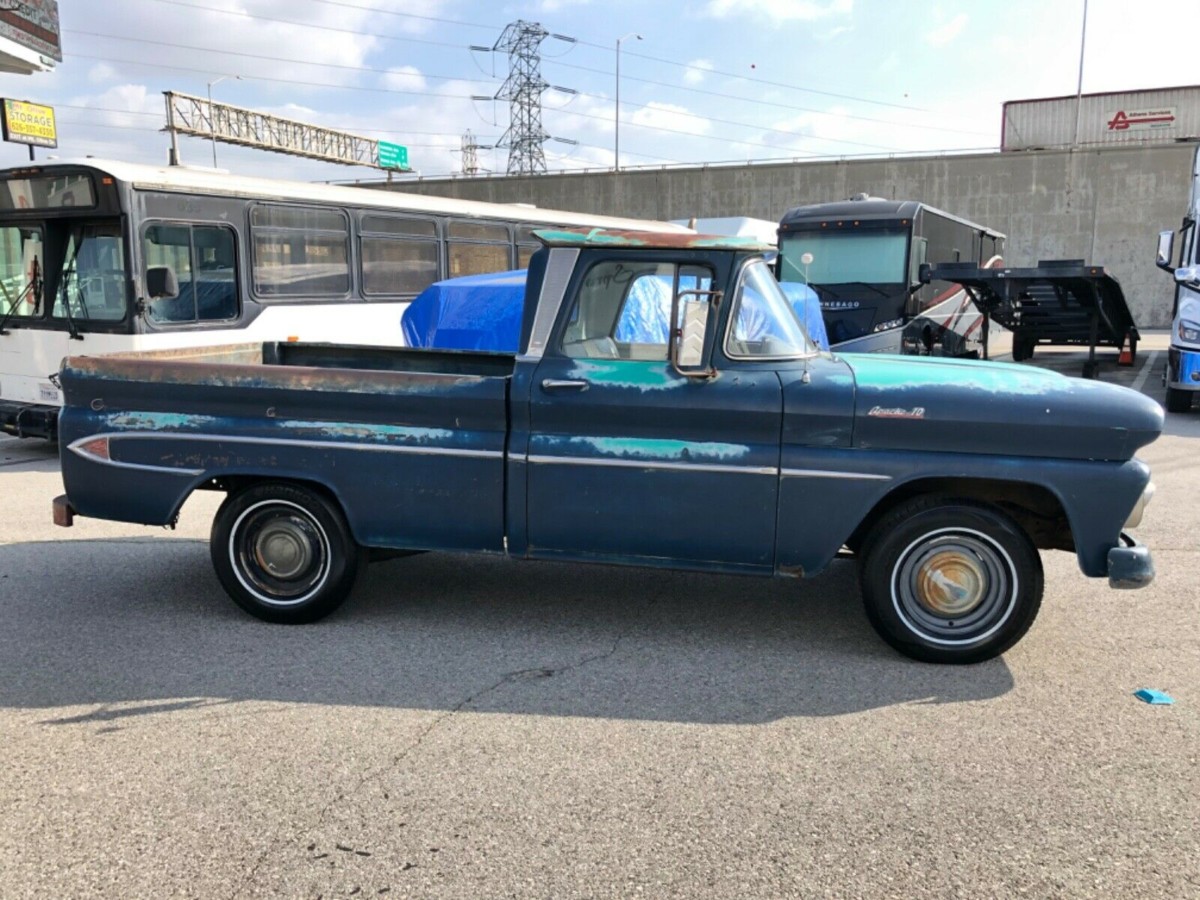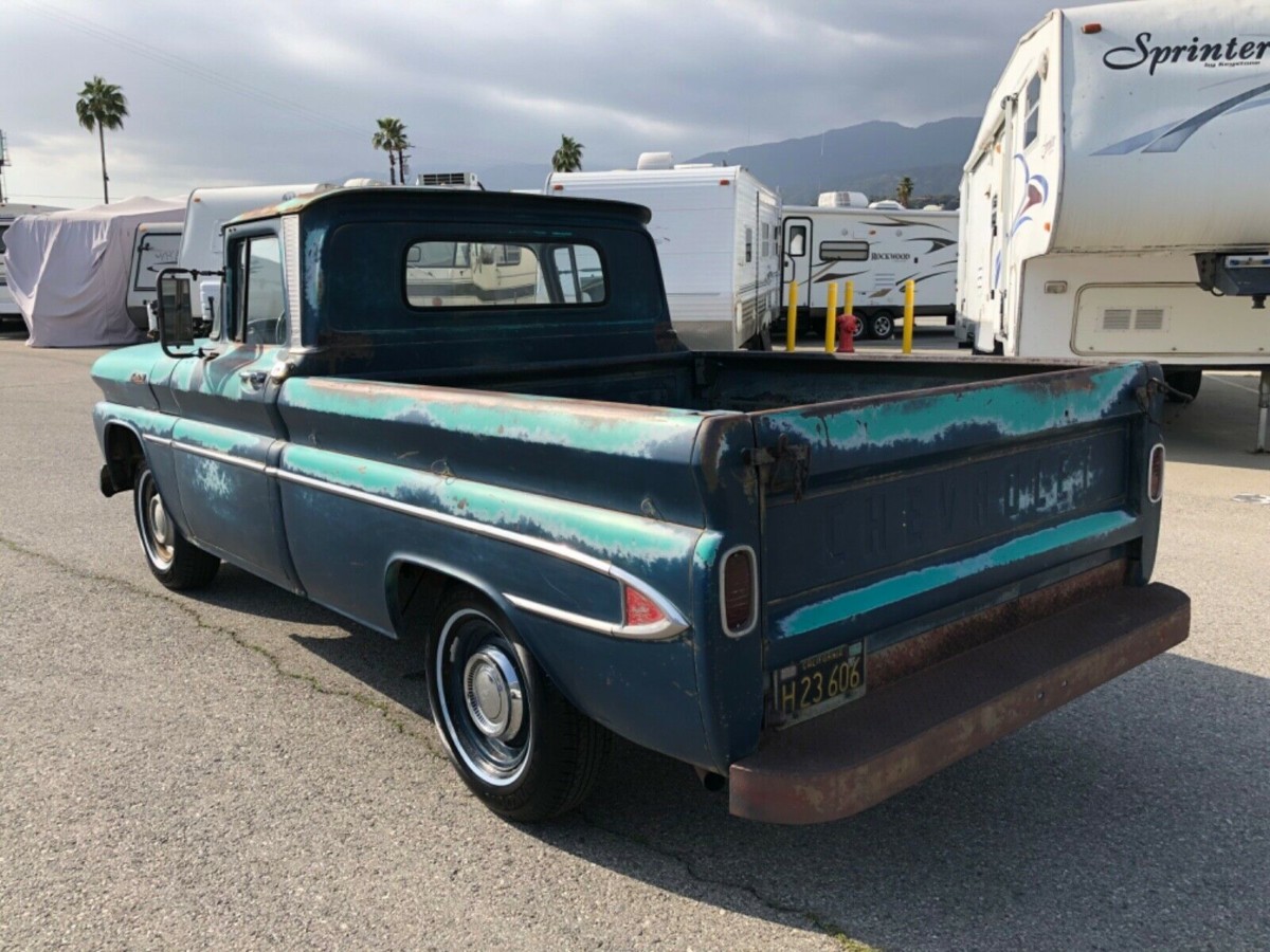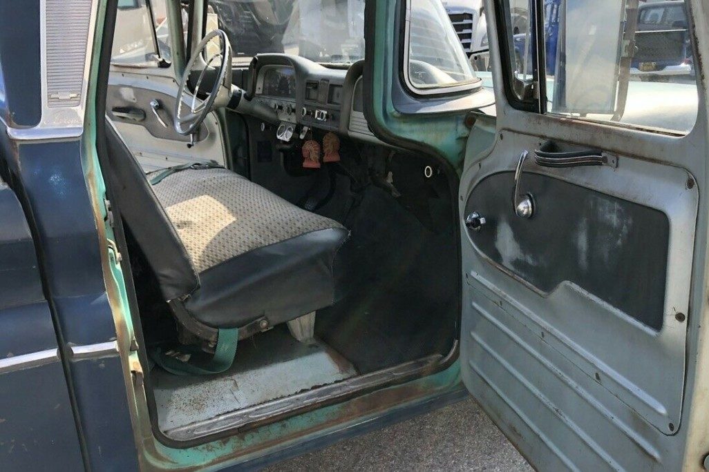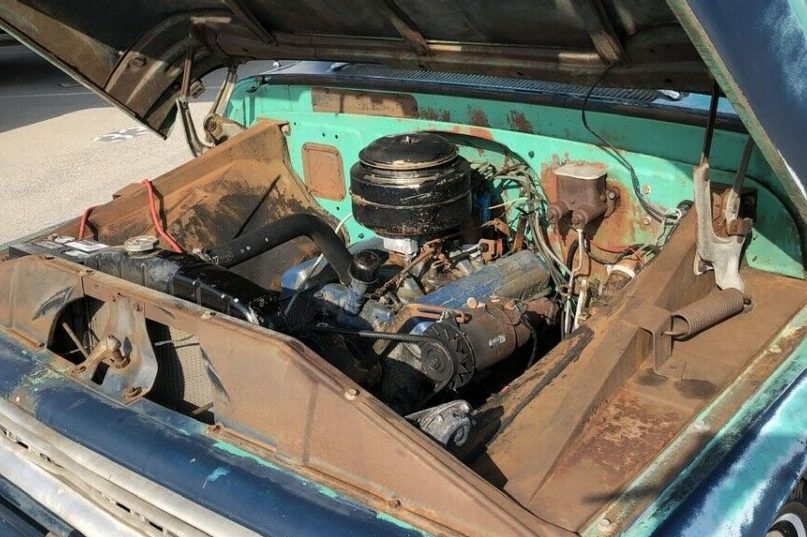 Trying to rationalize why you are attracted to a certain classic can sometimes be a difficult thing to do. All that I can come up with is that having grown up in Australia, we weren’t exposed to many of these types of vehicles. We saw plenty of light pickups similar to the Ranchero or the El Camino, but seeing a pickup of this type was something of a rarity. Maybe it comes down to being attracted to something that I simply couldn’t have. Anyway, this C-10 is a solid example, even if the paint does look quite tatty. Rust problems are inconsequential, with small spots in the bottoms of both front fenders appearing to be about it. The floors and frame look really good, and the fact that the vehicle has spent its entire life in California has no doubt helped this in some way. It even still wears its original black plates, which is a great touch. Under that pretty ordinary Dark Blue paint, we can see the original Tartan Turquoise. Apparently, the original owner felt like a bit of a change, so treated the Chevy to a repaint some years ago. As you can see, the preparation for this repaint wasn’t done to a high quality (or at all!), and now the Dark Blue paint is falling off the vehicle at a great rate. It would be interesting to hit that paint with a pressure cleaner to see how much of it could be “encouraged” to fall off. Even if it doesn’t all come off, I would be inclined to strip the panels and treat the C-10 to a repaint in its original color, because I believe that it would look pretty nice. One stand-out feature is the external trim, which is not only complete but is in excellent condition. The side trim, in particular, can be quite susceptible to physical damage, so to find it looking so good is a real bonus. The original hubcaps are missing, but sourcing a replacement set should be a fairly easy task.