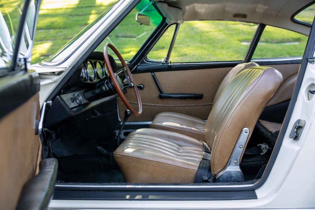 The interiors of claimed-original cars are a fantastic litmus test for what the seller is claiming, and in the case of this 912, it really does live up to expectations. Although tan or biscuit-colored seating surfaces are typical for white cars, I was secretly hoping for an oxblood or cardinal interior to put this 912 over the top. Regardless, the wood-rimmed steering wheel is a treat and not a piece of trim appears to be out of place. With crank windows and no other notable power options, this is purity defined. The seller confirms the interior comes with its factory radio, factory rubber mats, spare tire, jack, and more.