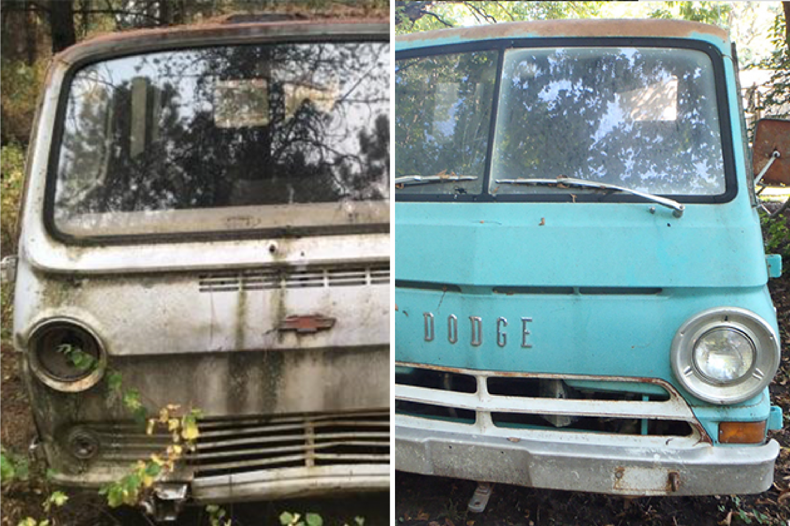 The Dodge all day long for a period correct mini-motor home for one tank trips. I’d leave the Chevy for the parts scroungers but I could see a 283 fitting.