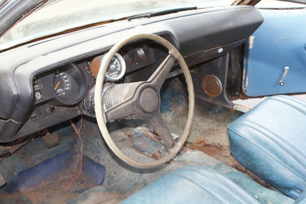 The ‘Cuda was originally optioned with a white interior, but as with the engine and transmission, that white upholstery is now only a distant memory. However, it isn’t all bad news, because the interior does appear to be complete, and there are plenty of bits that could see further use without any big dramas. The dash and wheel look like they would restore quite nicely, while the pad looks to be in really good condition. The upholstered surfaces will all need new covers, and it’s a reasonably safe bet that a new headliner will also be on the shopping list.
