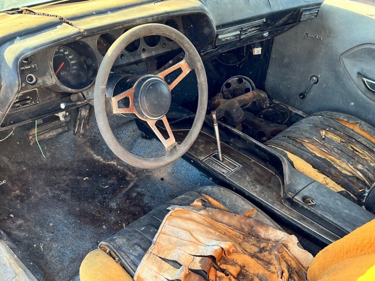 This underside shot confirms the seller’s claim the rails wear nothing beyond surface corrosion and that the ‘Cuda is structurally sound. They include no engine photos, but they have a good reason to justify that move. Lifting the hood reveals the engine and transmission are MIA. It originally housed a 340ci V8 producing 240hp. Coupled with the three-speed TorqueFlite transmission, the car would have covered the ¼ mile in 15.5 seconds before winding its way to 123mph. That sounds pretty effortless, and the impression would have been reinforced by the original owner’s decision to tick power assistance for the steering and front disc brakes on the Order Form. Although the engine and transmission are long gone, the driveshaft and front and rear ends are intact. The lack of an engine and transmission allows the buyer to slot whatever they like under the hood. Locating a date-correct 340 and TorqueFlite is possible for a faithful refurbishment, although other options are worth considering. I referred to the ‘Cuda as a blank canvas, so selecting a more potent or modern drivetrain is possible. It is a chance to let the imagination run wild, and if the buyer intends to retain the car indefinitely, the cost may not be a determining factor.