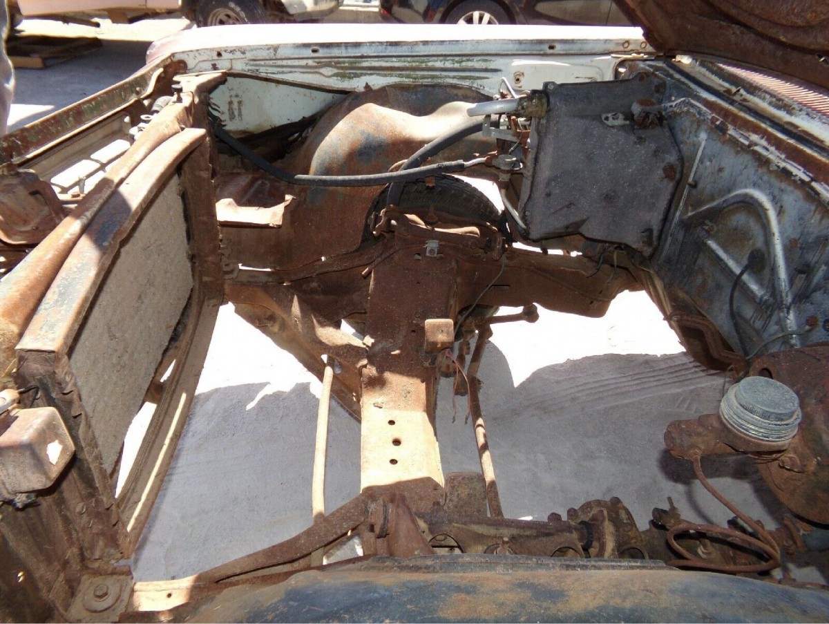 Decoding the Trim Tag reveals that the Impala rolled off the production line wearing Ermine White paint with a White soft-top. Combine that with an interior trimmed in Turquoise, and the car would’ve been a stunner. Those days are a long way behind it now, and the buyer will be facing a fairly steep mountain if they wish to return it to its former glory. There is some of the usual rust that we’ve come to expect in the lower body panels, although it is surprisingly light and could be addressed with simple patches. I wish the same were true of the floors, but they have rotted beyond the point of no return. The buyer will need to replace the lot, along with the trunk pan. The frame sports a heavy covering of surface corrosion, but with no evidence of penetrating rust, the car could be structurally sound. While the panels show only minor rust, they have accumulated a fair collection of minor dings and dents that the owner will need to tackle. The paint is also badly crazed, so sending the car to a media blaster might be a smart first step. The trim shows some noticeable deterioration, while the windshield is cracked to add to the woes.