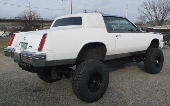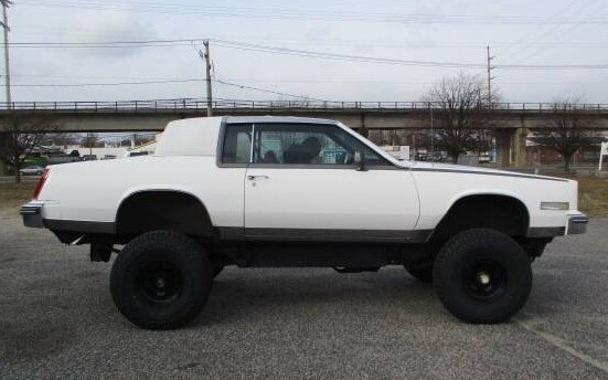 Moving on to what… What you’re seeing here is the result of removing the bottom part of a 1982 Chevrolet K5 Blazer and the top part of a 1981 Cadillac Eldorado, then combining them. And not just any Eldorado, mind you, but the even more blingy and trimmed-out Biarritz edition, which, among other extra luxurious touches, got you a stainless-steel roof in 81. No word on whether or not the leftover Cadillac chassis was mated to the Blazer’s body, but if we find it, we’ll let you know.