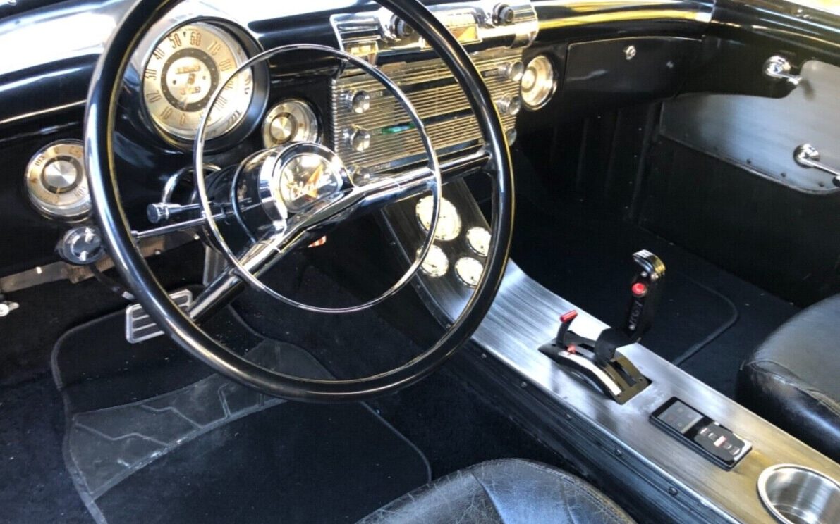 Myriad chrome details highlight the upscale appeal of this Buick; tip your hat to the builder for keeping much of the dashboard original. Nostalgia fans might like more retro styling in the handsome center console and controls, but the line lock, automatic transmission shifter, and air ride controller fall readily to hand ahead of a feature few cars of the Truman era boasted:ย cupholders!