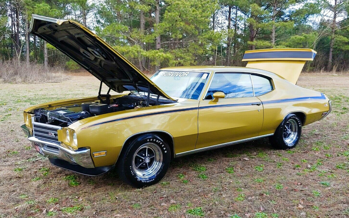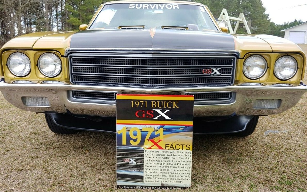 Buick hit a home run in 1970 with the redesign of their intermediate Skylark-based Gran Sport. Coming on the heels of the 1969 version with its more controversial styling, the 1970 version was buttoned-down, refined and looked like it meant business. And with the “Stage 1” performance upgrade it did mean business. The issue for Buick, though, is maybe the Gran Sport was too buttoned-down so in mid-1970 the decision was made by Buick executives to jazz up the Gran Sport’s appearance to make it more visually eye-popping; enter the GSX. How much more eye-popping you ask? Well here is a sophomore year example from 1971, largely unchanged from 1970, located in Lumberton, North Carolina and available here on eBay for a current bid of $28,000. The reserve, as of this writing, has not yet been met and there is an optional BIN price of $49,995.