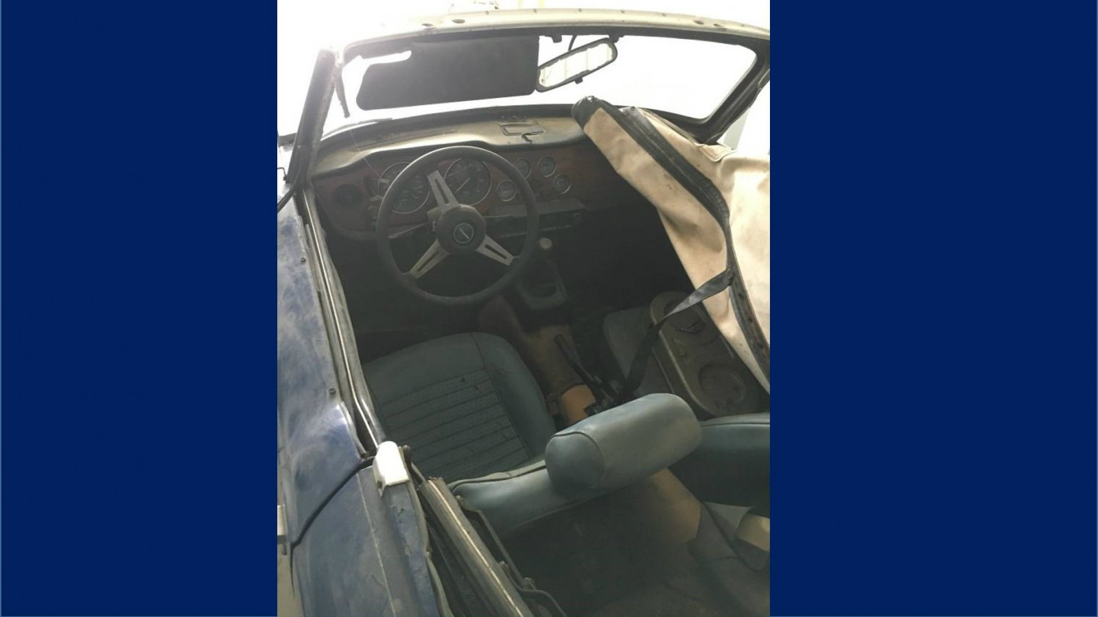 The blue interior is original as well as being somewhat unusual in the TR6 world, but it’s not rare enough that the car is worth any extra for it. The great thing about Triumphs is that prospective owners are highly supported by both local and national clubs and great parts vendors. If this car truly doesn’t have any rust, you are in pretty good shape! If you go look, check for rust at the trailing arm mounts in the rear first; it’s the most serious place a TR6 can rust.