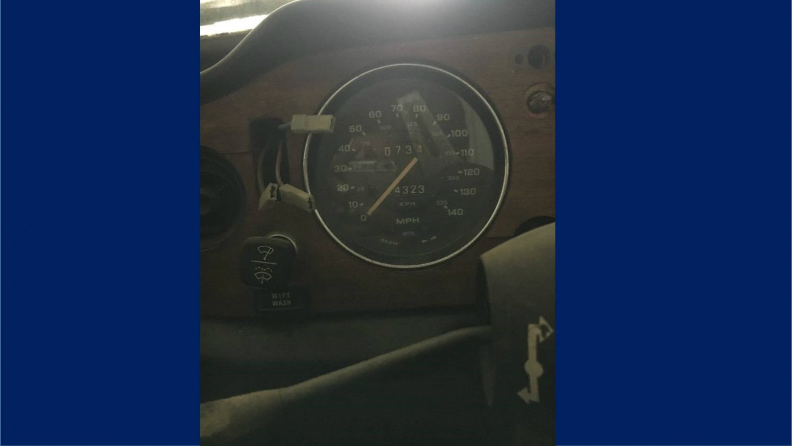 That’s 74,323 miles on the odometer, which is probably as accurate as any TR6 odometer is. No overdrive as witnessed by the lack of a second stalk on the left, and the missing light switch is pretty easy to find and inexpensive when you do. Overall this looks like a pretty decent project if you don’t mind the dust — could this Triumph be your Triumph?