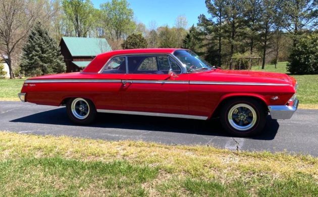 Sport Coupes were big sellers at Chevy dealers in 1962 – more than 323,000 copies were shipped. But the way they kept track of production inventory back then doesn’t break the numbers by model. Since the Impala Super Sport had exploded with buyer interest, we assume that the Impala represented the majority of those sales. None of the seller’s verbiage or photos indicates that this Impala began life as an SS.