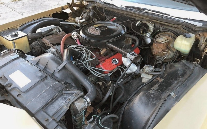 The interior vinyl needs a little work, upholstery-wise, but that shouldn’t be a huge issue, it’s only money, right? (crickets) The back seat looks great and this one is listed as having 22,615 miles on it, which I’m assuming is 122,615. This is a Minnesota car – or at least it’s located there, we don’t know its history – and the underside does show a lot of heavy surface rust in a few areas. The transmission is a Turbo-Hydramatic 400 with column shift.