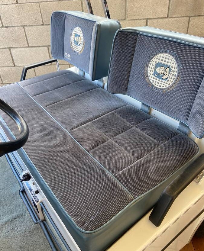 This cart, presumably built in 1985, looks to be in excellent condition. It was styled to mimic some of Chrysler’s cars of that era, who sponsored both the tournament and Bob for many, many years. It bears original custom-embroidered seats with Bob’s famous caricature and also has fringe around the roof and custom dash work. As you might expect, it also has goodies like a built-in drink cooler, chrome golf tee dispensers, turn signals (though not street-legal), headlights, and more. The tires are in good shape, and we’re told the cart wants nothing.