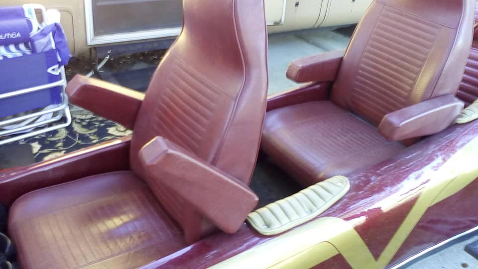 While the seats look comfortable enough, I have two questions. First, take another look at the top picture in this post. How exactly does the rider/driver reach those front handlebars? Perhaps with the wingspan of an NBA player? Secondly, the seller reports seeing over 115 miles per hour on the speedometer before the cable seized. Who in their right mind (or wrong one?) would be a passenger at that speed? How would you stay in the seat without a seat belt? Inquiring minds want to know these things!