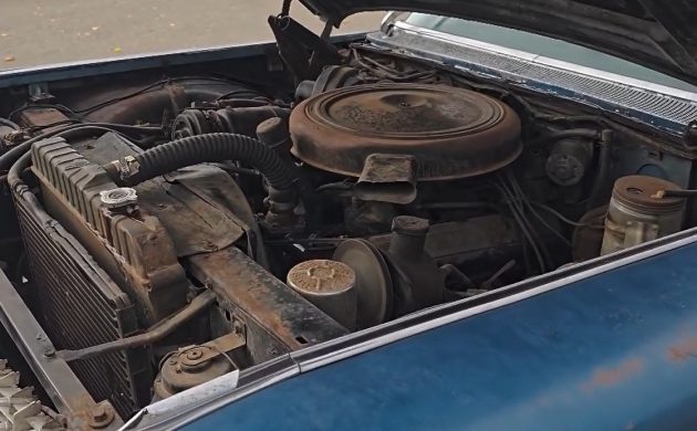 This one is said to still be wearing its original paint, with the passenger’s fender looking like it may have gotten touched up at some point. The owner mentions that the finish is displaying honest patina, and he also assures us that any visible rust is on the surface only, with the Cadillac stated to remain solid throughout with no actual corrosion. A couple of scrapes can be seen near the back half on the passenger side, along with a small dent in the quarter panel. However, the sheet metal seems fairly straight for the most part, so it probably wouldn’t take an extensive amount of prep time to get the exterior ready for a new paint job.