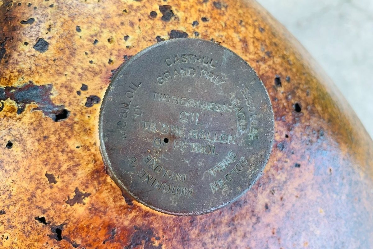 And the gas tank is pretty rough, with pitting and rotting occurring near the gas cap and the front fork area. This gas cap reads “Two measures OIL to ONE GALLON of petrol.” Several brands of oil are listed on the gas cap for two-stroke lubrication, that cap bearing a striking resemblance to a U.S. Geographical Survey marker. Incidentally, the 50 photos accompanying the eBay write up are beautifully taken and clear. The light was perfect the day they were shot in Lutz, Florida where the Mark II is resting currently.