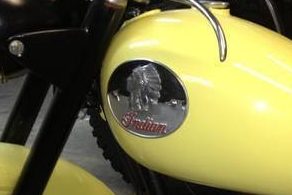 This example shows the vivid, deep relief of the Indian in full headdress on the stamped logo badge (seen here on a completely restored Lance Mark II). There are other easily seen distinctive components that may cause trouble for the restorer: one is a big chip on one of the left side jug splines, and then this: