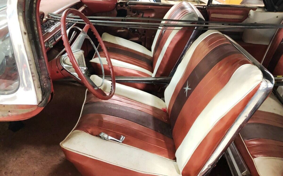 General Motors styling of the era is hard to beat, and the Bonneville parts were top-shelf in the Pontiac lineup for ’59. If original, this extra-cost upholstery features “Jeweltone Maroon and Ivory top grain deep-dyed leathers,” according to original brochures. The end result offers movie-star glamour every time you slip behind the wheel.