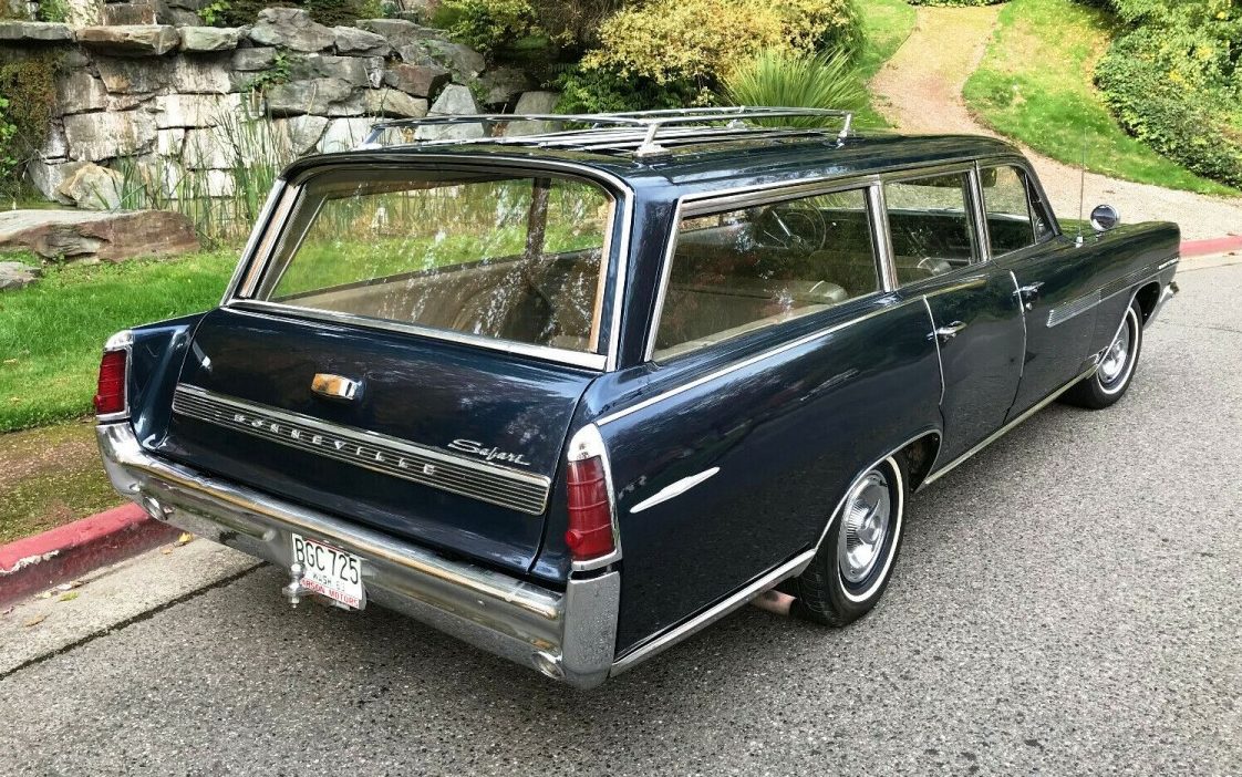 I have four Catalina Safaris and frankly I like them better than the Bonneville trim. The Bonneville does have a nicer interior and better transmission but I would be replacing the transmission anyway. The full length body moulding is tough to find in any condition and nothing fits those rear quarters except another wagon. I sent the seller a couple questions with no response. Looking at the color combo, I believe this was a white car to begin with. All of these wagons have body colored firewall under the hood and this one is painted black. Maybe it was a black car, but that fawn interior was usually in white cars. Paint on the quarters looks a little wavy but maybe just bad pictures. I think we are pretty close to what it is worth.