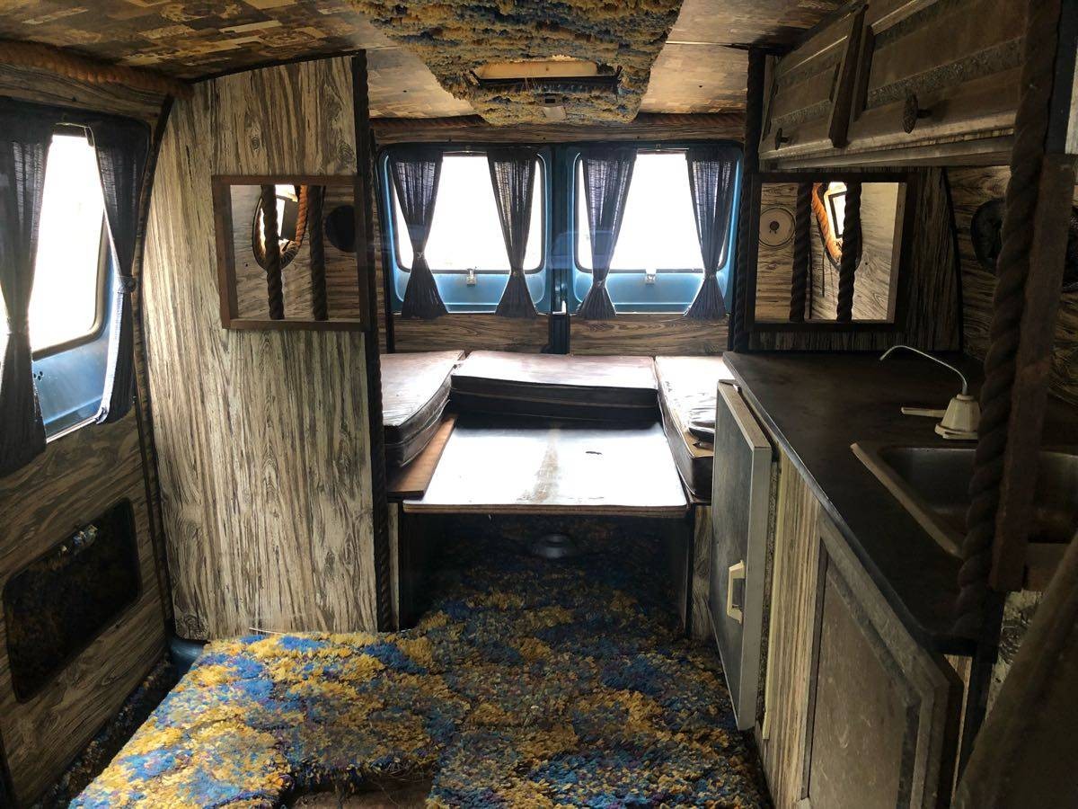 Inside, you’ll find the full assortment of wood paneling, kitchen-in-miniature, and funky carpeting that are all considered must-haves for a van of this era. The seller doesn’t elaborate on the origins of the conversion inside, but it looks to be done to a fairly high level considering how well it is holding up. The back of the Dodge provides some sleeping quarters while the mid-section will allows for the basics of hand washing and campfire meal prep.