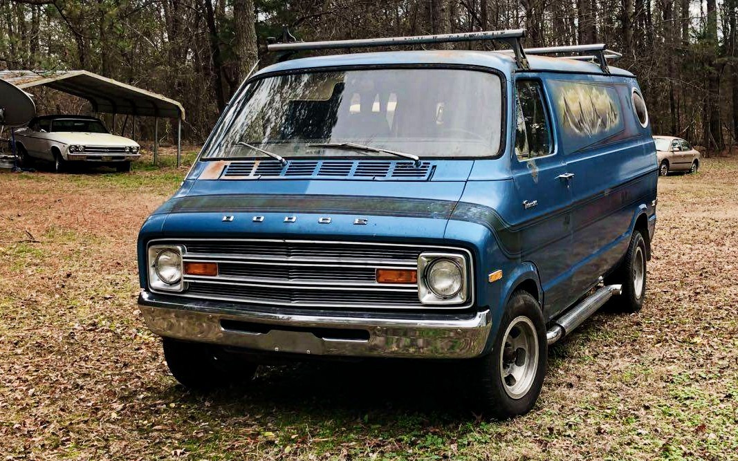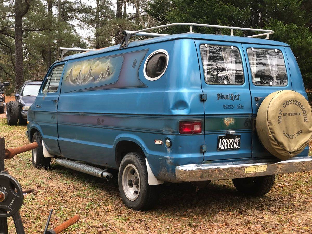 Nice original era Dodge van.I have a 72′ I bought new and have rust issues that I don’t see here. Must be kept under cover. Would love to buy it and put all my Goodies into it. I also have the “US Indy” wheels that I special ordered with the 8 bolt pattern and 15 “. 8.5 in the front and 10.0 in the rear, 340 with dana rear(B-300) auto, Sportsman Royal Maxi. The chrome bumpers and tag light here tell me he added them on later. Tradesman vans were all painted. It may have floor issues(stock rubber mats don’t do well) and the roof surfaces may have a slight rust problem(lack of paint), but the roof rails look great(hint under cover). Rear doors always leak that cause the roof rails to fail. Wish the van was closer, than I may consider on taking on this project.