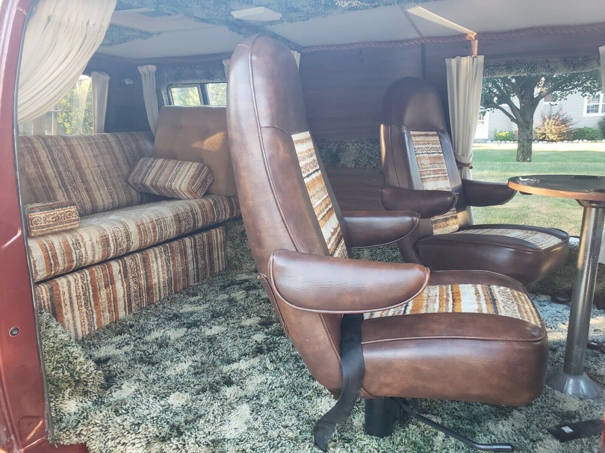 The work certainly looks like it was done to a high level, with nicely integrated features including a full sofa, captains chairs that evidently swivel, tables, curtains, and wall-to-wall shag carpeting. It’s everything you could possibly want in a classic “boogie” van, right down to the shag carpeting continuing along the ceiling. The seller notes that all of the carpeting was recently professionally cleaned, which is likely one of the biggest concerns/fears of anyone looking to get into a van of this style and vintage. Knowing it’s been gone through with a steam cleaner or whatever other cleaning agent might be appropriate will help put the next owner’s mind at ease over the level of hinky-ness that occurred within.