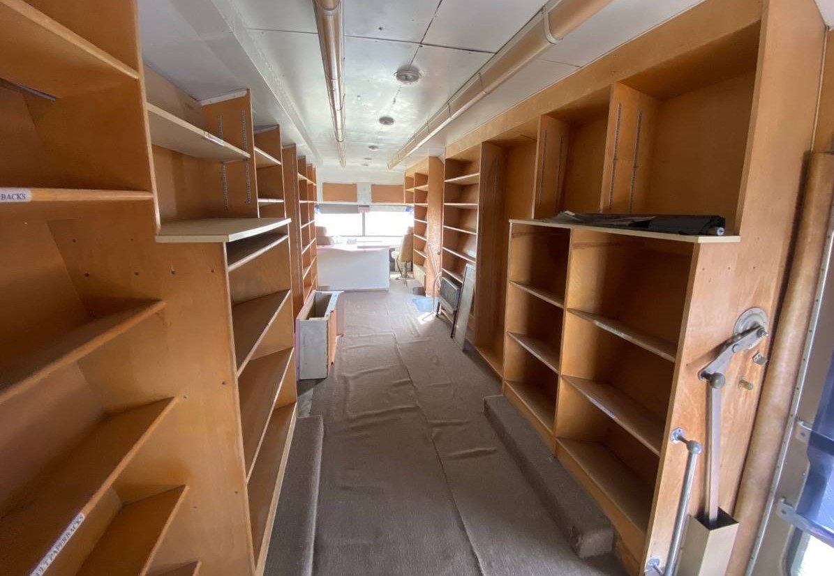 We’re guessing the bookmobile spent a lot of time in a stationary position by the design of the shelves. If this bus had a load of books on these shelves, there is nothing to keep them from flying around when the bus is in motion. From the insides, it looks like it could have carried hundreds, even thousands of books for young and young alike readers to enjoy. The big question is what you would do with it if you bought it. Convert it into a food truck, make an RV out of it, or come up with something entirely different? It’s a shame that so much of the reading that gets done these days is online as it would be way cool if the bus could be kept as it was previously intended.