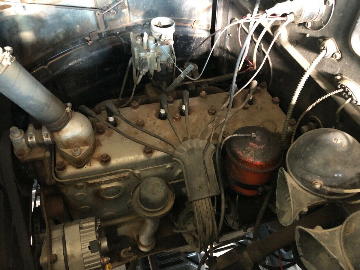 This should be the standard Dodge 201 cubic inch six cylinder engine with 82 horsepower. This is reported to be the original engine and transmission which are both supposed to be in working condition and were running when the current seller received the car two years ago. It looks like there’s an electrical update with a modern alternator and the motor looks like it is complete and in running condition. This seems to be a car that you could repair and refurbish as needed and then drive and enjoy with the great patina.