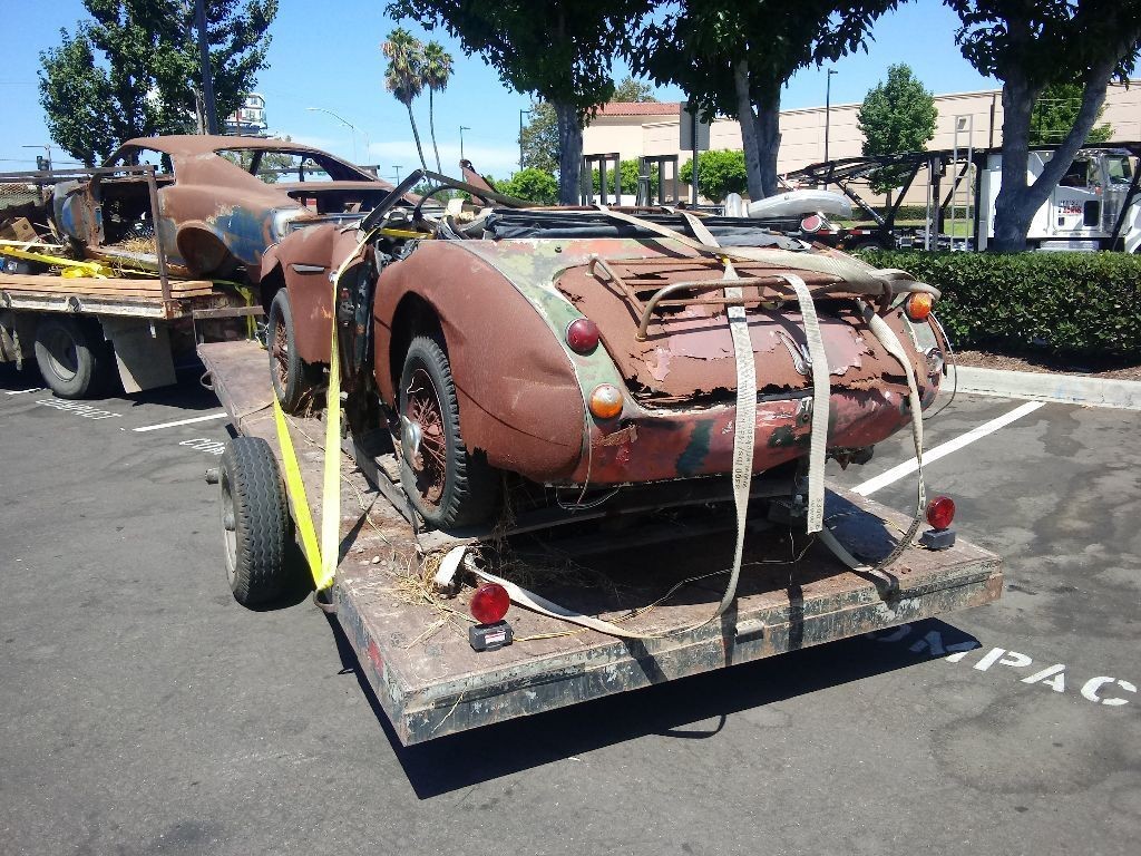 Even the hauler is missing parts. I guess the seller just doesn’t think having all 4 wheels on 4-wheel car hauler is worth the trouble. At least this poor Healey, the hauler, and the seller are in sync with each other.