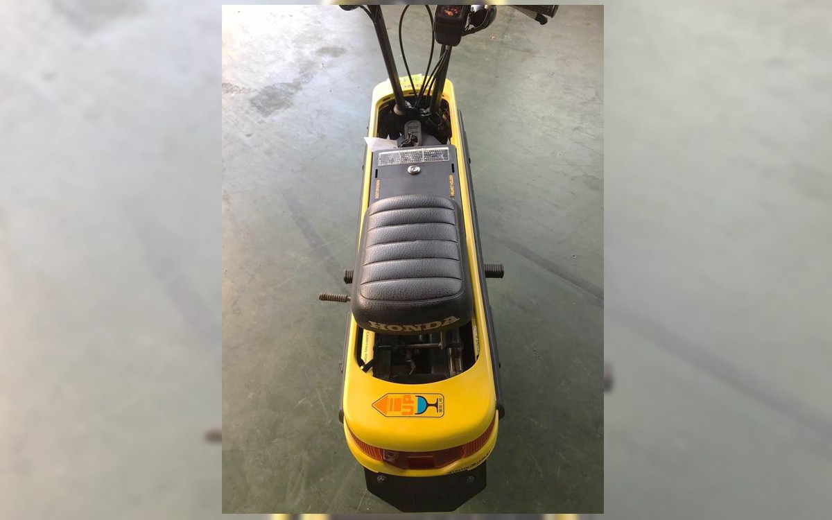 This is basically how I feel riding mine. Generally, 20 mph is considered pretty much the top speed and that feels fast. The seat folds down into that recessed area, the black plastic cover ahead of that comes off which is where the folded down handlebars go, and then you’re ready to haul it around. As with Hondas of this era, there’s a piercing beep when the turn signals are on. Yes, this thing has turn signals, a brake light, and a headlight, but no cup holders or GPS.