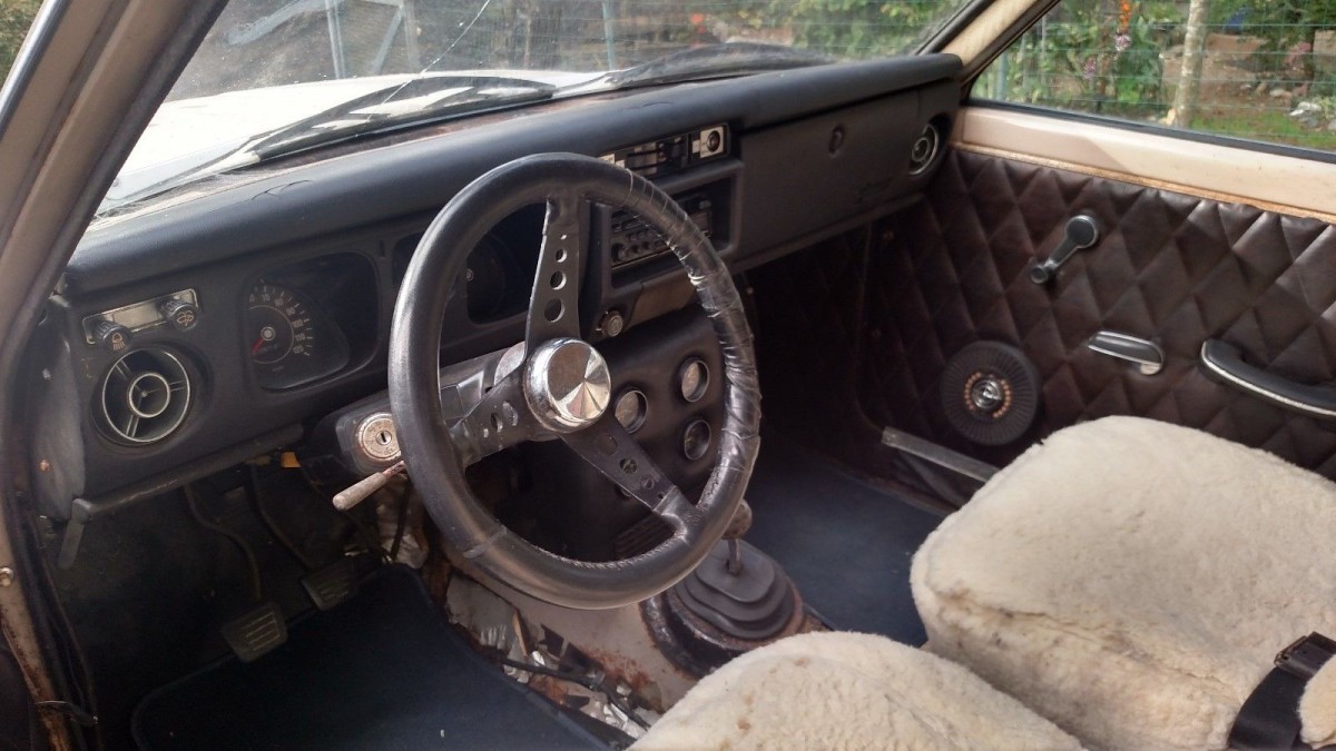 The dash pad has a couple of minor cracks in it, but hopefully these can be repaired. Otherwise the interior is going to require quite a bit of work. There is an aftermarket radio/cassette player fitted along with speakers in the door trims. Those door trims aren’t original, and the vinyl looks like it may be interior trim material from the early 240Z. The seats are an unknown quantity, as is the headliner. There is no carpet and the condition of the rear seat is also unknown.