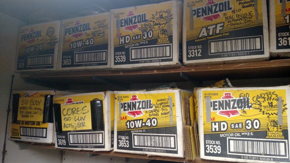 There are no shots of the engine, but there is this shot of the numerous boxes of parts that will be included in the sale. These parts include a complete and unassembled spare engine, spare cylinder heads and a catalogue of sundry parts that the seller has accumulated over 35 years. There is also an unassembled turbo engine, although the seller doesn’t elaborate on what type of engine it is. One of the photos does indicate that it may be a turbo L-Series engine. There are also several other turbo engines that are relatively easy to transplant into a 510 engine bay, and all of these provide great performance in a car that is so light. The car does sit lower than standard as it has been fitted with factory competition suspension components.