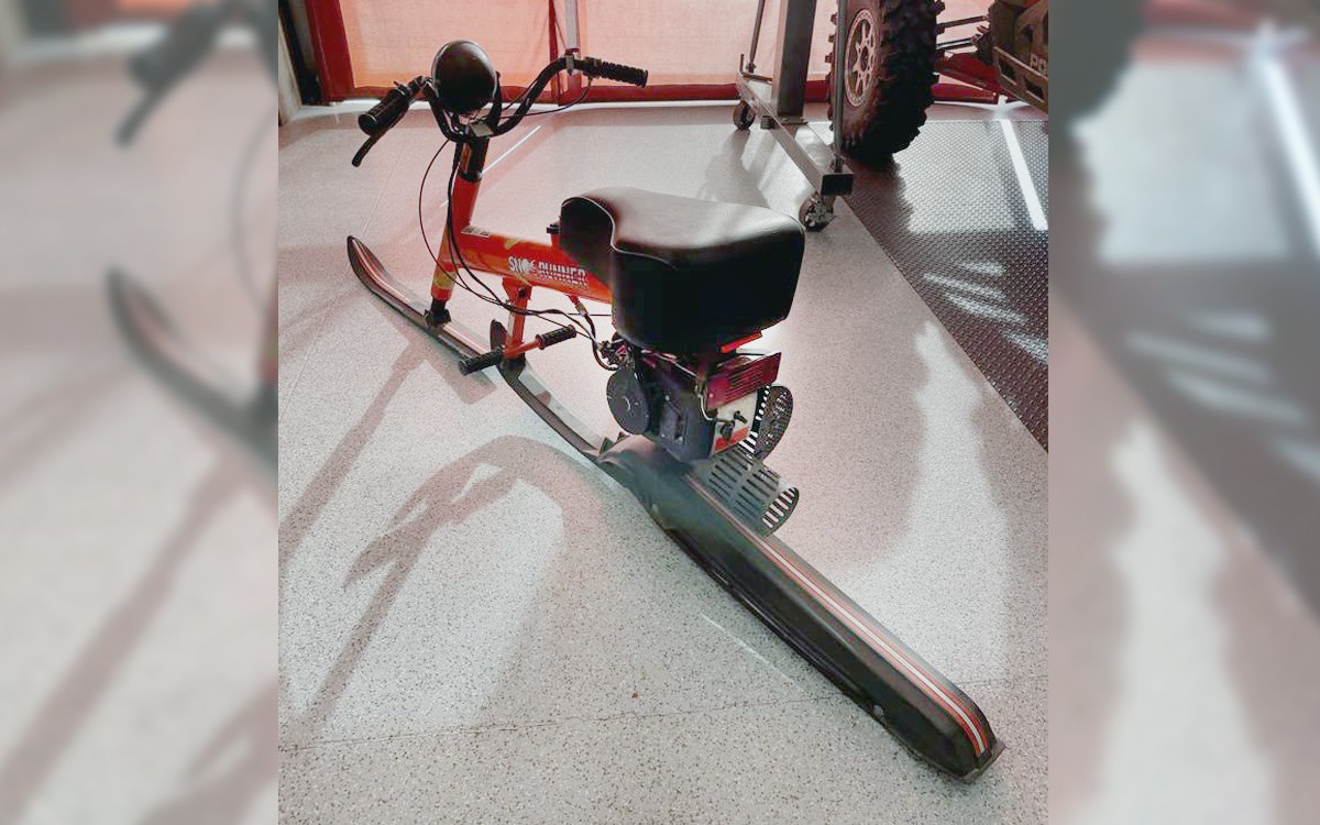 And, some of the flat black engine paint appears to be worn, and… Well, that’s enough and they aren’t big issues, of course, they’re just something that I noticed since I have an almost perfect one for a reference. The frame is the gas tank and it holds about 1.3-gallons of pre-mixed gas since this 134 cc West Bend engine is a two-stroke and they are smokey little devils. I just started mine the other day and killed any mosquitoes that weren’t already dead from the single-digit temperatures. Have any of you owned or ridden a Sno Runner?