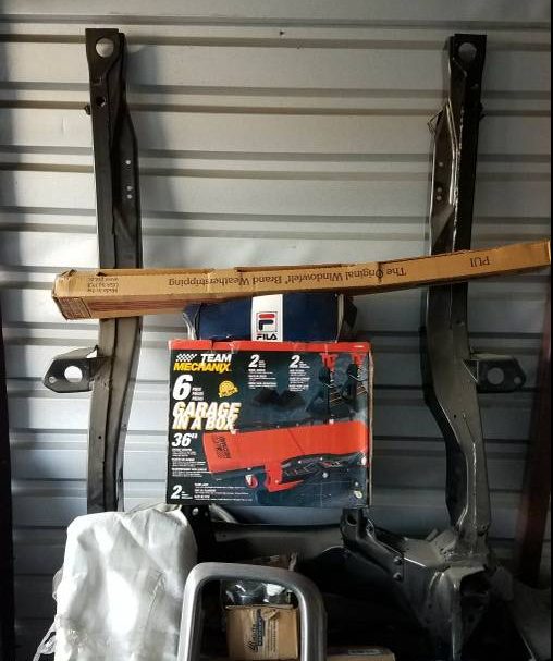 Here’s the subframe. The creeper is also included but, of course, it will be awhile before you’ll have anything to crawl under. Do you think there is any chance the seller has all the parts? There are no pictures of any carefully bagged and labeled parts, just buckets with bits in the bottom. Could this Firebird be anything more than a parts car? Perhaps the remains could be used to rebuild a rusty or bent Firebird. The first step would be to verify the VIN. There should be one on the cowl and one under the dash where the fan would be. The block number provided doesn’t tell you much, except perhaps the “Y” indicates an automatic. On some GM cars, the last six numbers of the VIN might be there, but on Pontiacs, I think the number is on the front of the block near the bottom. If the VIN doesn’t come back as stolen, the metal work on the body is OK and you have deep enough pockets this Firebird would be rebuilt. There are, of course, many sources for parts, including hardware kits. It will be interesting to see if any of our readers have any ideas (besides “walk away”).
