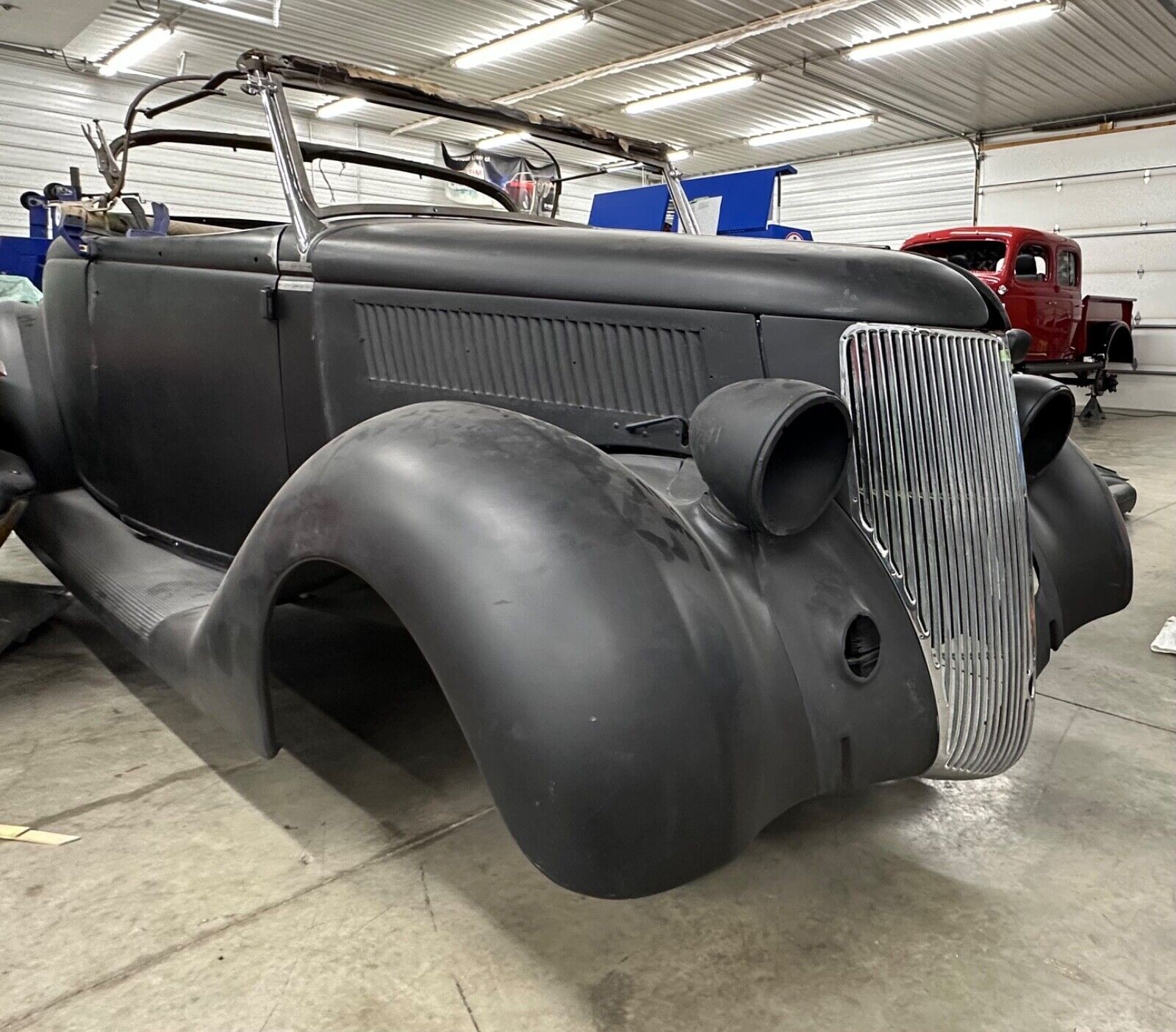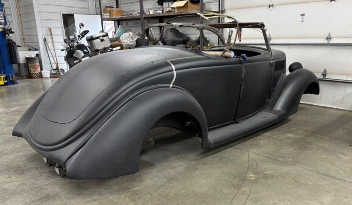 We see all manner of cars, trucks, motorcycles, and other forms of transportation on Barn Finds. However, you would have to look back a long way in our archives to find a vehicle with not only no drivetrain but no wheels as well. The good news is that the missing major pieces may be easy to find for this 1936 Ford roadster for sale on eBay in Winchester, Indiana. This black primer-clad and trussed-up body is currently missing every single piece of its drivetrain along with nearly all of its interior. While this beautiful body is one of Ford’s finest styling achievements, the new owner will have to patiently collect the needed pieces over time to get this Ford back on the road in a reasonable amount of time. With bidding sitting at $7,100, is this a golden opportunity to put a beautiful roadster in your garage one piece at a time?