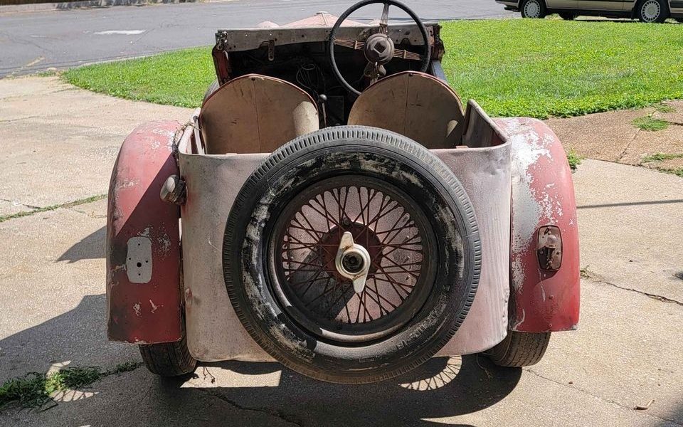 So yes, this Hornet looks like a two-seater but the seller states, “It had an Eustace Watkins Ltd Body fitted originally. This car would have been the E.W. International Full 4-seat body, based on the cowl area“. I suppose that explains why the not-so-hot-looking “Dunlop pneumatic seats” look like there’s almost in the back seat. The interior is rather gutted though there is one image on an instrument panel so I guess it’s included, just not attached. Missing parts, among others, would include the passenger side door, bumpers, front fenders, one of the taillights, and the windshield though the seller does mention that he has the door.