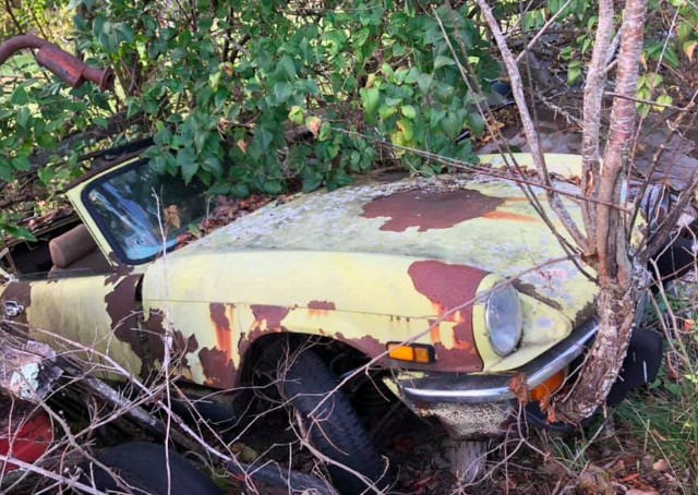 Additional photos show what look to be the actual parts cars, with several Spitfires evidently parked in the weeds and undergrowth for many years. The seller provides no information on whether some of these cars are closer than others to return to the road, but given the open-endedness of the listing, I’d simply offer a price that reflects the cost/time involved in removing the Spitfires and associated parts and see how eager the seller is to be rid of this large stash of neglected British roadsters.