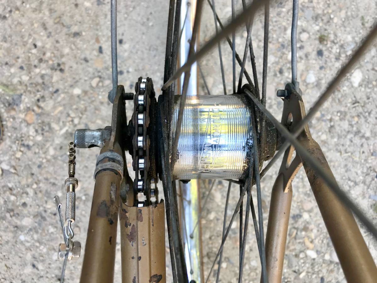 Should you feel the need to keep this bike as original as can be, recognize that the rear wheel can be rebuilt into a new SA hub of known usage. Parts to replace would be the hub and spokes. Rim if reasonable, tire, tube, rim strip reused. Any reputable bike shop can do the job. This was never an expensive vehicle even new. Sentiment can override cost, but this one is very feasible.