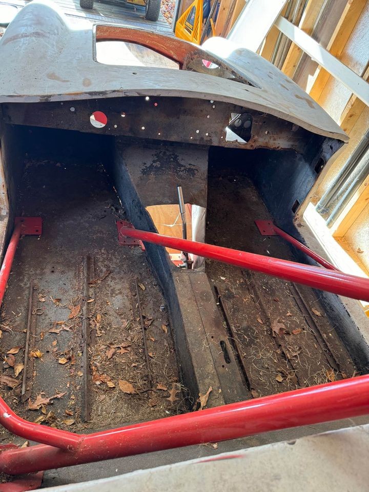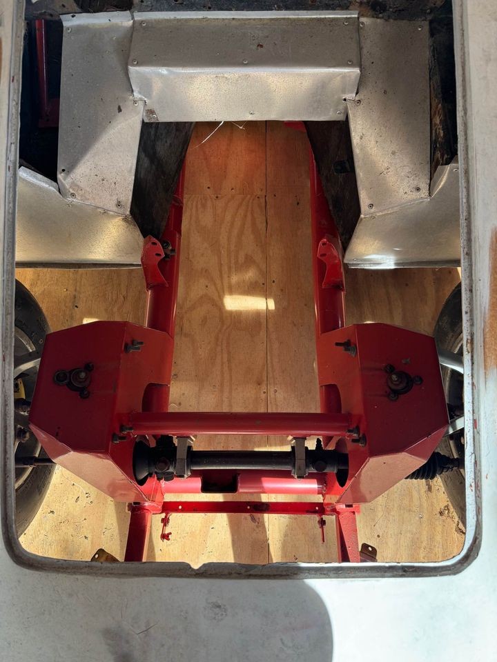 This is the trunk, with the floor of the shop below. Fueling an early Turner involves opening the boot as the filler neck does not protrude through the body; later Turners had an external fuel filler like this one. Normally, the spare would reside here. Clearly, the buyer will encounter plenty of work reassembling this car – or the shortcut is to purchase a finished example for about $25k. And the better bet is?