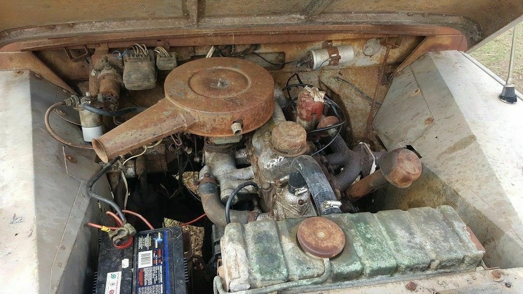 So, let’s talk about interior trim. Actually, that doesn’t give us a lot to talk about. You get padding and vinyl on the seats, and everything else is painted metal. The Land Rover was conceived as an agricultural and commercial vehicle. The manufacturer reasoned that luxuries such as carpet weren’t really compatible with farm mud and other icky stuff, so the best that you could hope for was a rubber mat, which this one doesn’t have. Having said that, the interior is complete, and apart from the radio hanging off the dash, it also seems to be largely original. It looks like it would be a fairly straightforward restoration prospect. The other thing to consider is the fact that the Land Rover is right-hand drive. Up until 2018, the vehicle called Australia home, which explains this. It could be converted to left-hand drive without a lot of trouble, but that would destroy the vehicle’s originality, so I’d be inclined to leave it as it is.