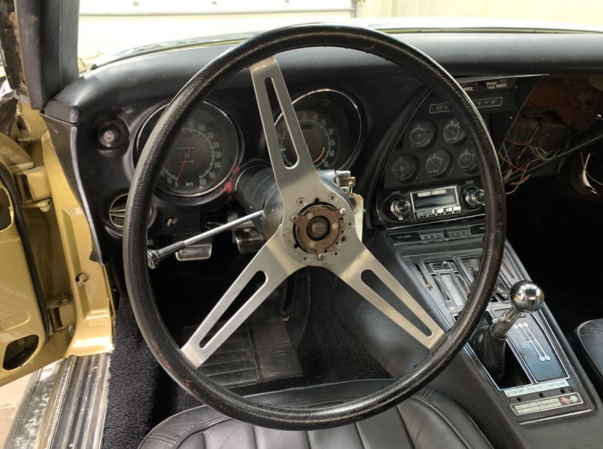 The seller indicates this Corvette’s engine bay houses a 350ci V8 that sends its power to the road via a four-speed manual transmission. Chevrolet increased its small-block capacity from 327ci in 1969, offering two versions of the new 350 for Corvette buyers. The entry-level ZQ3 produced a healthy 300hp, while the optional L46 put 350hp at the driver’s disposal. Although I can’t be entirely sure, my instincts tell me this car is 1-of-12,846 equipped with the L46. At $131.65 over the sticker price, it represented a worthwhile investment chosen by more than 33% of buyers that year. It endowed the ‘Vette with the ability to cover the ¼-mile in 14.2 seconds and gave it a top speed of 142mph. It appears that this engine bay is missing a few items, like the ignition shield, and the air cleaner is an aftermarket item. The seller indicates that although this car isn’t roadworthy, it runs and drives. It is unclear whether the impact damaged any mechanical components or other items, but it is another aspect of this classic requiring further investigation.